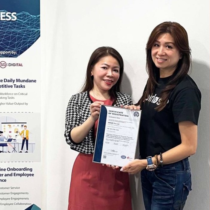 AM8ZE, a leading provider of intelligent automation solutions and ERP in Singapore, has been awarded the ISO/IEC 27001 certification for its Information Security Management System (ISMS). This certification not only demonstrates AM8ZE's strong commitment to information security but also affirms the company's pioneering role in adhering to global security standards.